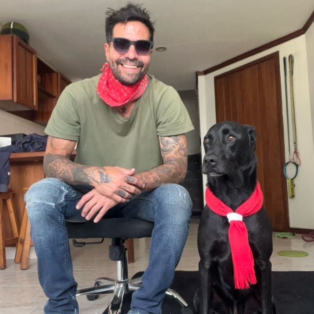 “Desde las ausencias de mis viejos he sufrido de depresión. Pero desde que Monstro llegó a mi vida, a mitad de la pandemia, se volvió un perro sanador. Yo lo adopté de una Fundación en Bogotá, cuando tenía un mes. Encontraron a la mamá muerta con 3 hermanitos.”